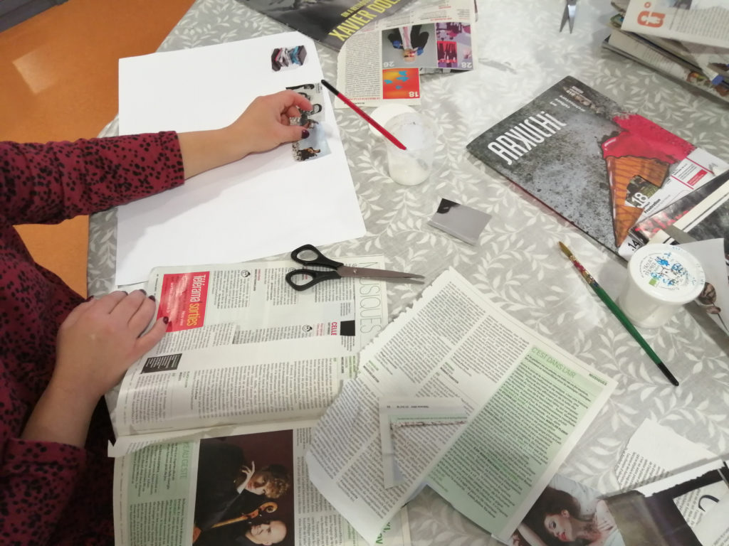 Le collage est fréquemment utilisé en art-thérapie, et c’est généralement la médiation que j’utilise dans les premiers temps de la prise en charge d’un groupe…
